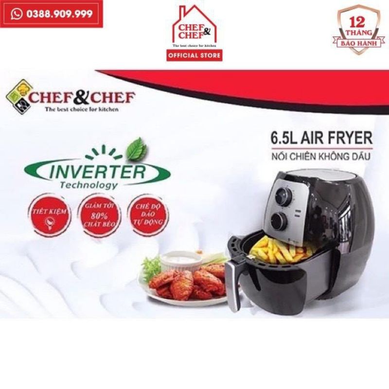 Nồi chiên không dầu Chef & Chef 6.5l nút cơ / cảm ứng thiết kế sang trọng, tiện lợi dễ sử dụng✪ SHOP XIN CAM KẾT ✪