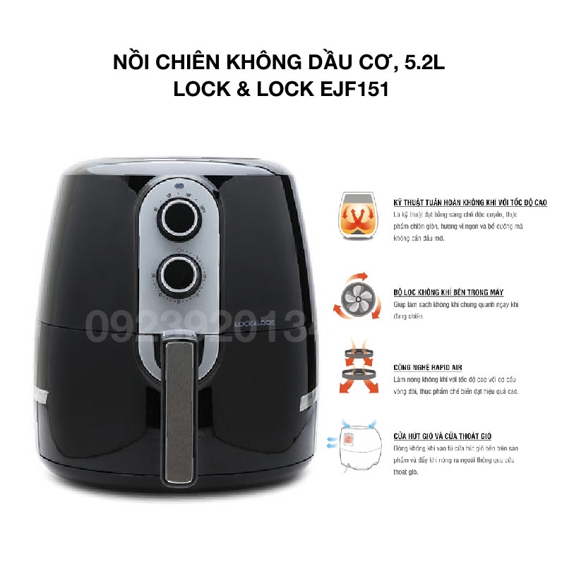 Giới thiệu [Mã ELHADEV giảm 4% đơn 300K] Nồi chiên không dầu cơ, 5.2L Lock & Lock EJF151