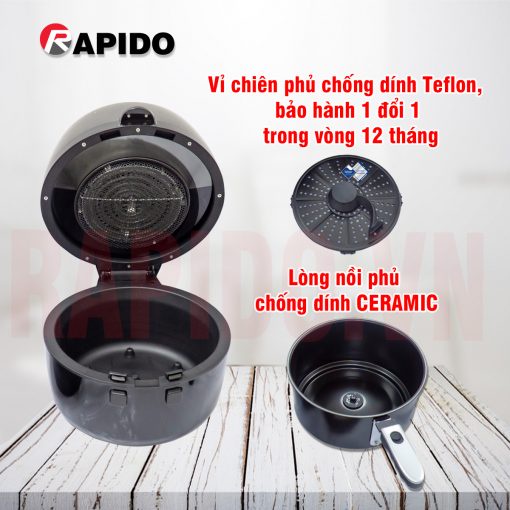 Nồi chiên không dầu điện tử Rapido RAF6.5D, công nghệ inverter, khay chiên chống dính cao cấp bảo vệ sức khỏe bạn và gđ