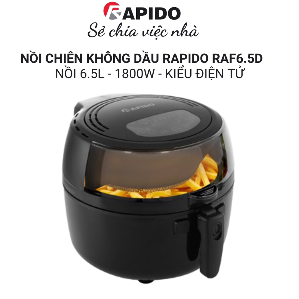 Thiết Bị Điện Gia Dụng > Đồ gia dụng nhà bếp > Nồi chiên không dầu || Nồi chiên không dầu điện tử Rapido RAF6.5D, công nghệ inverter, khay chiên chống dính cao cấp bảo vệ sức khỏe bạn và gđCòn hàng