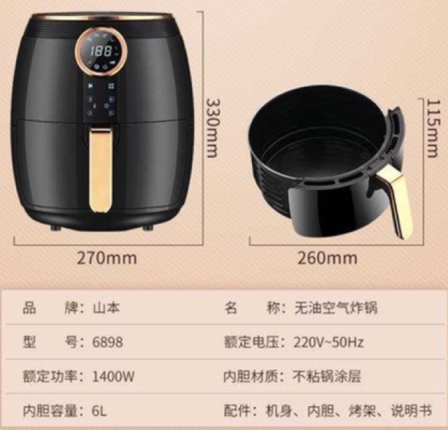 Thiết Bị Điện Gia Dụng > Đồ gia dụng nhà bếp > Nồi chiên không dầu || [Mã 273ELHA100K0 hoàn 7% đơn 500K] NỒI CHIÊN KHÔNG DẦU HÃNG SHANBEN ĐIỆN TỬ 6898 DUNG TÍCH 6 LÍTCòn hàng