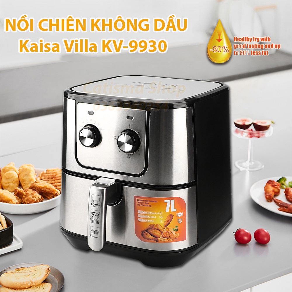 Nồi chiên không dầu Kaisa Villa KV-9930 dung tích lớn 7L công suất 1800W bảo hành 12 tháng màu bạc