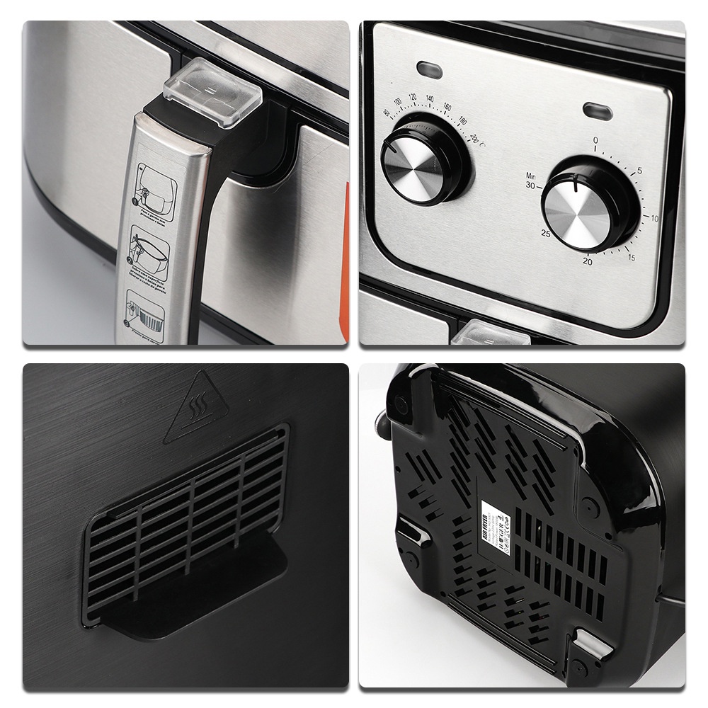 + Điều khiển nhiệt độ có thể điều chỉnh cho phép bạn đặt trước nhiệt độ nấu phù hợp với thức ăn lên đến 200 độ C.