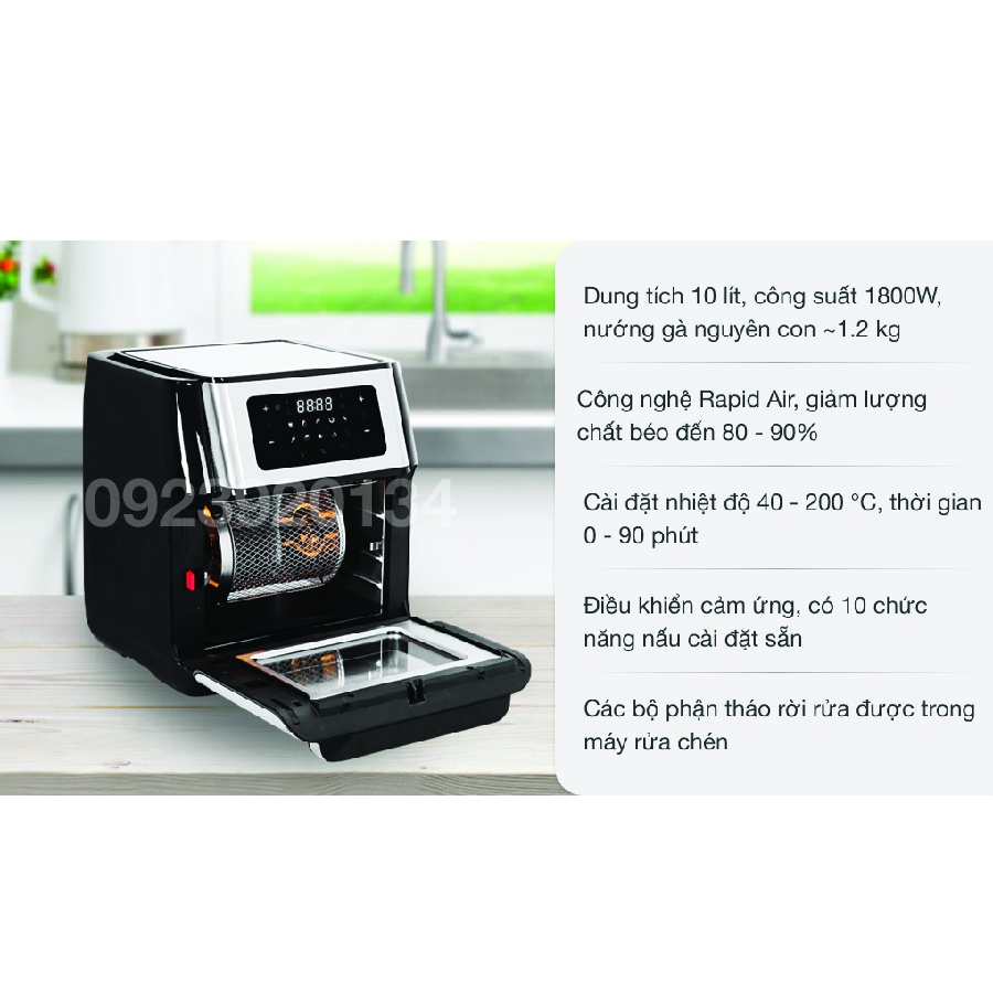 Nồi chiên không dầu Kalite Q10 10 lít - Chế biến được lượng lớn thức ăn cùng lúc, quay được gà, vịt nguyên con dưới 1.5 kg với dung tích 10 lít