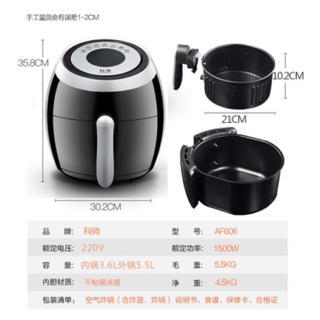 MÔ TẢ SẢN PHẨM :- Tên sản phẩm: Nồi chiên không dầu KESHUAI AF606 1500W Dung tích 5.5L điều khiển cảm ứng