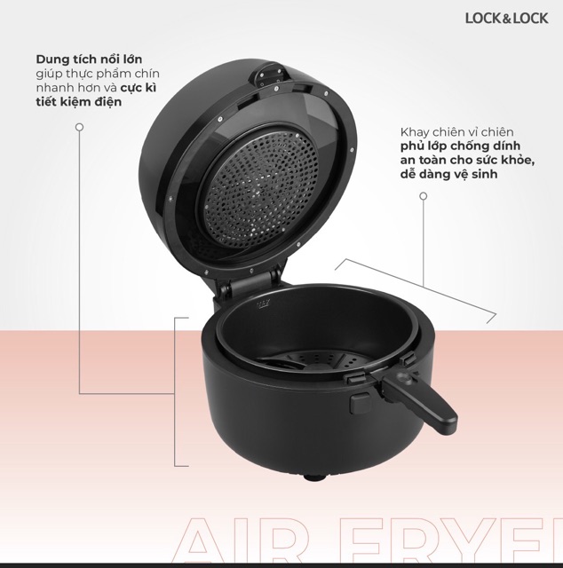 Giới thiệu Nồi chiên không dầu lock&lock cơ 6.5L EJF586BLK, công suất 1800w, bảo hành 12 tháng, công nghệ mới Inverter
