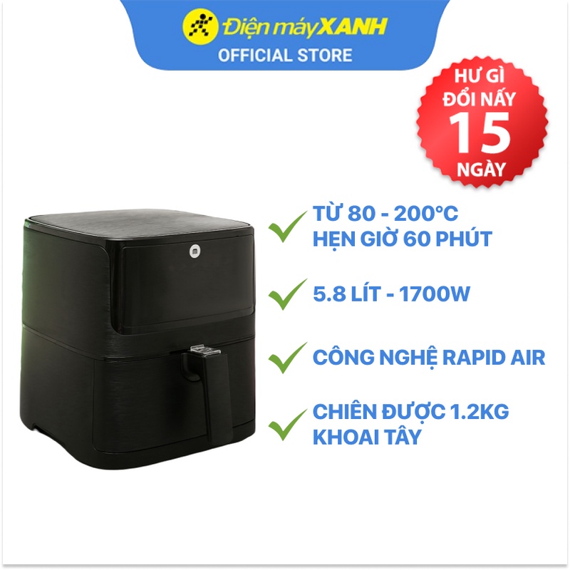 [Mã ELHADEV giảm 4% đơn 300K] Nồi chiên không dầu Mishio MK-284 5.8 lít Công suất 1700W BH 24 tháng, Chính hãng