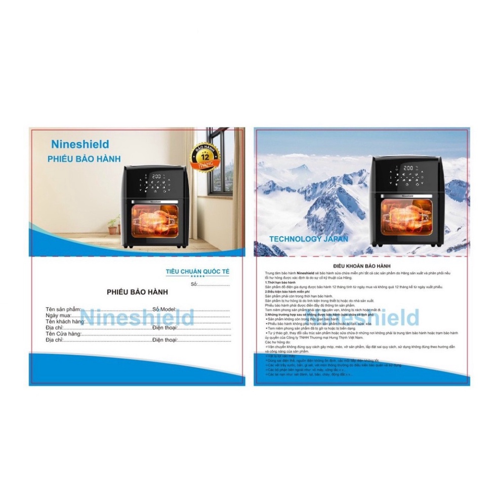 0963895791NỒI CHIÊN KHÔNG DẦU NINESHIELD 12L KB-1201 CÔNG SUẤT 1700W