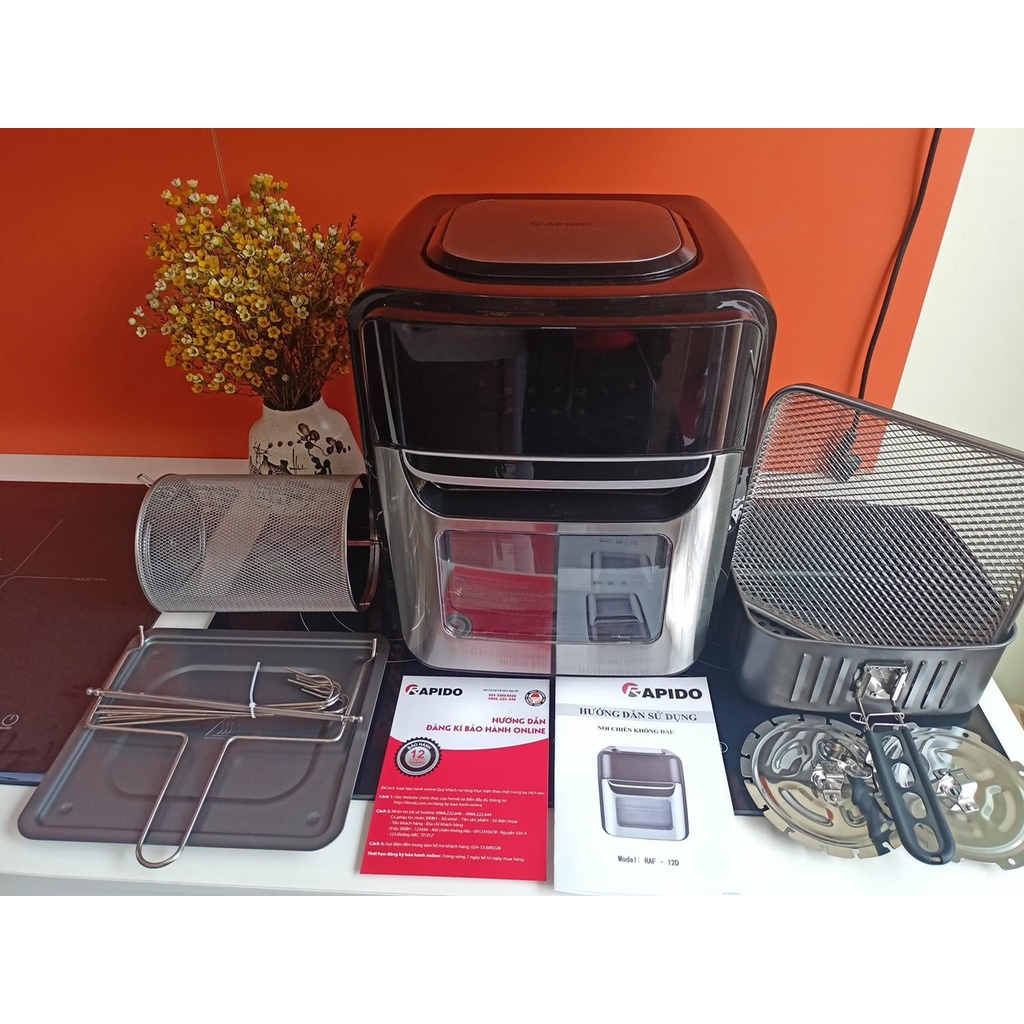 Giới thiệu Nồi chiên không dầu RAPIDO RAF-12D 1800W 12L công nghệ mới đối lưu 360 độ (Điều khiển điện tử) Bảo hành 12 tháng
