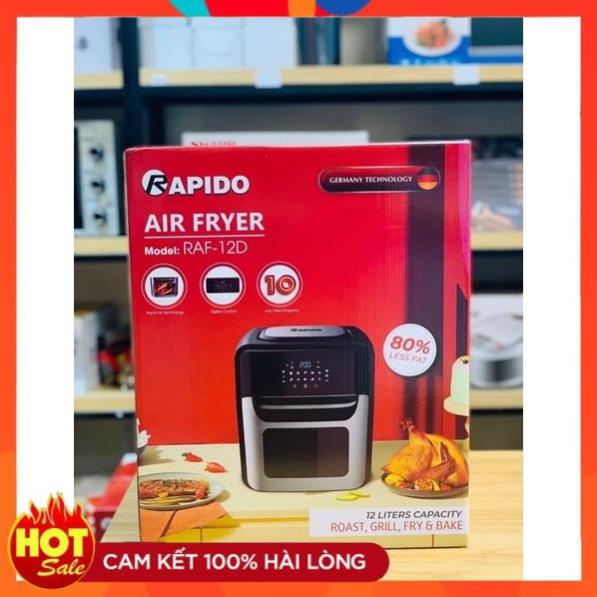 Thiết Bị Điện Gia Dụng > Đồ gia dụng nhà bếp > Nồi chiên không dầu || Nồi chiên không dầu Rapido RAF-12D dung tích 12L kết hợp lồng chiên , xiên quay mớiCòn hàng