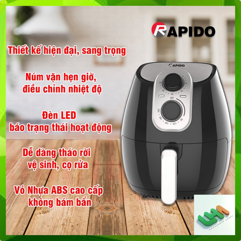 Thiết Bị Điện Gia Dụng > Đồ gia dụng nhà bếp > Nồi chiên không dầu || Nồi chiên không dầu Rapido RAF5.0M dung tích 5lCòn hàng