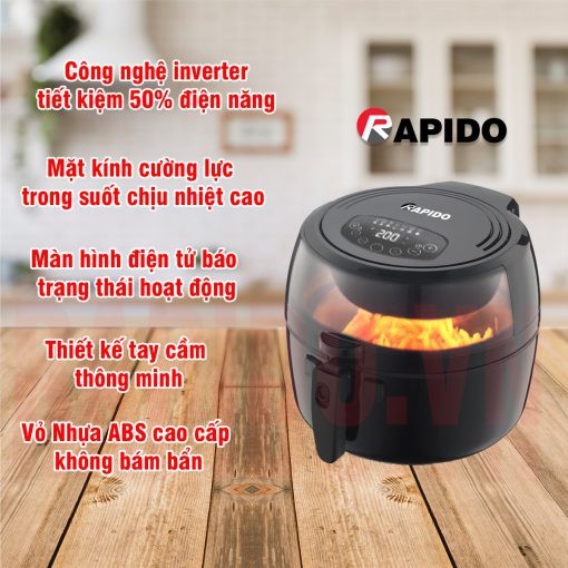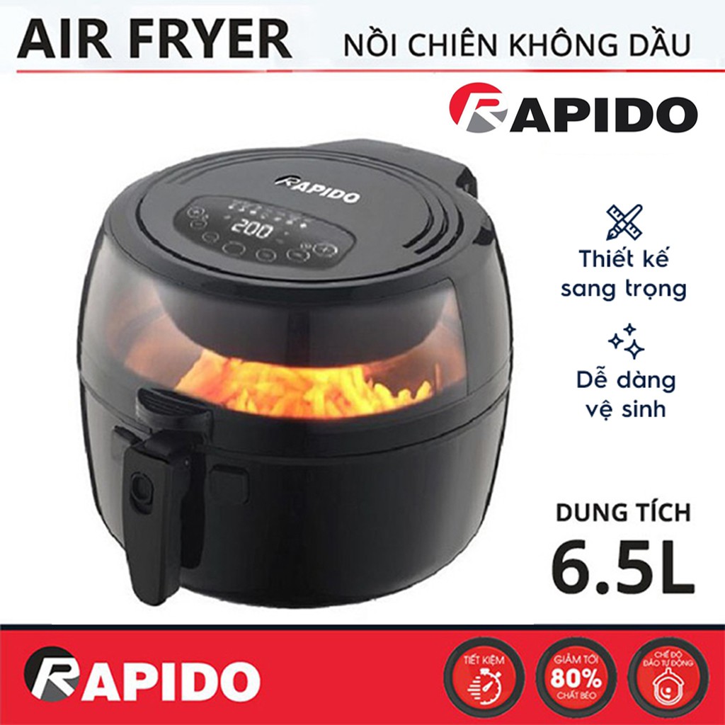 Nồi chiên không dầu Rapido RAF6.5D Inverter (6.5L), điều khiển điện tử,điều khiển cơ, lưỡi đảo ,1800W Chính hãng