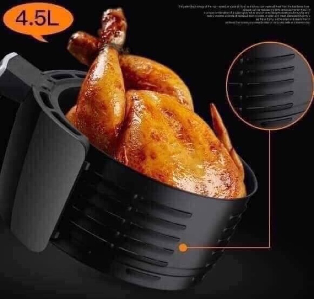 Nồi chiên chân không có thể dùng chiên gà, vịt, tôm, cua cá, sườn, thịt nướng, khoai tây chiên, đậu rán.... nhét vừa cả con gà vì 4.5L ạ. Giảm tối đa lượng dầu mỡ vào cơ thể, hạn chế béo phì và các bệnh tim mạch khác ạ.