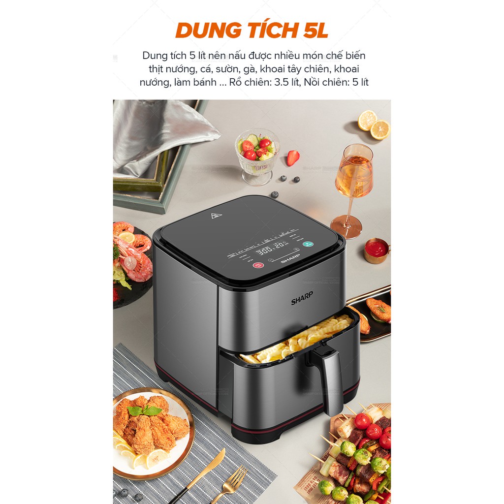 Giới thiệu [Mã ELHADEV giảm 4% đơn 300K] Nồi Chiên Không Dầu Sharp KF-AF50EV-ST Dung Tích 5L, Công Suất 1500W