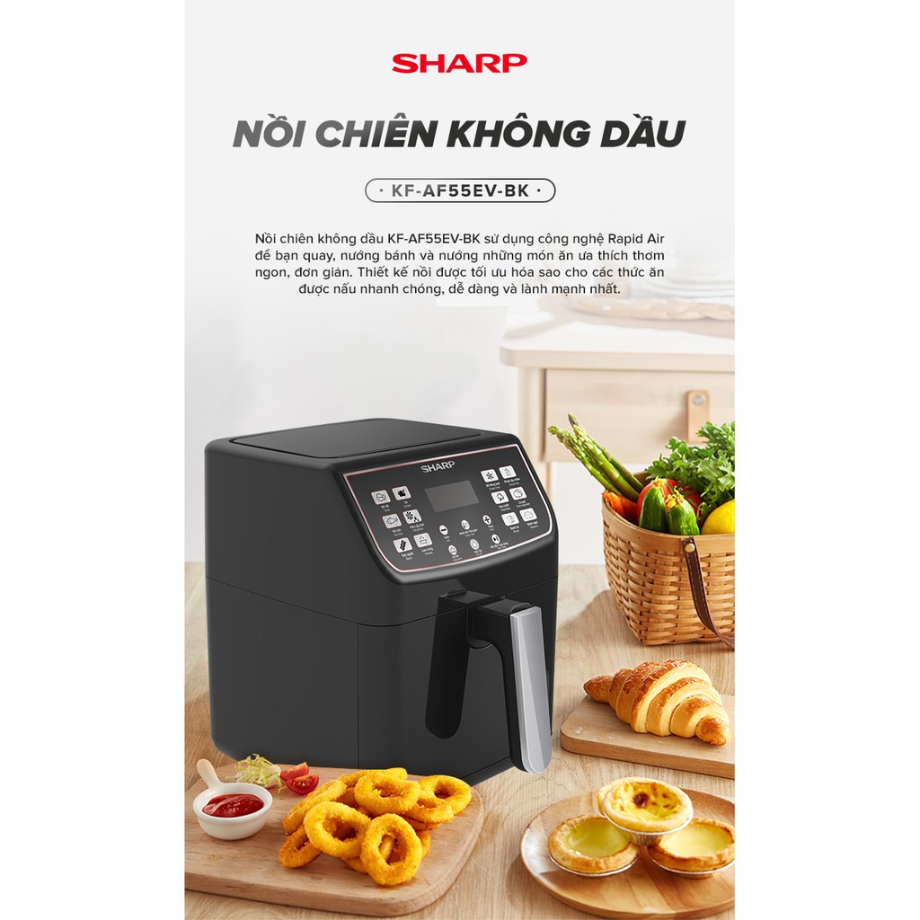 Nồi chiên không dầu Sharp KF-AF55EV-BK (Hàng chính hãng, Dung tích 5.5 lít, Bảo hành 12 tháng Toàn Quốc)