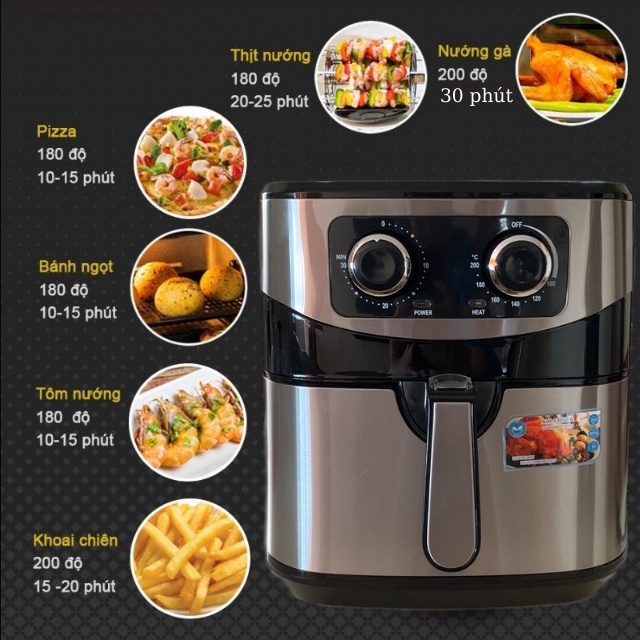 - Sử dụng công nghệ tiên tiến nhất hiện nay : Air Fryer làm nóng luồng không khí tuần hoàn 360 độ quanh thực phẩm làm chín thực phẩm từ từ, chín đều hoàn toàn mọi mặt