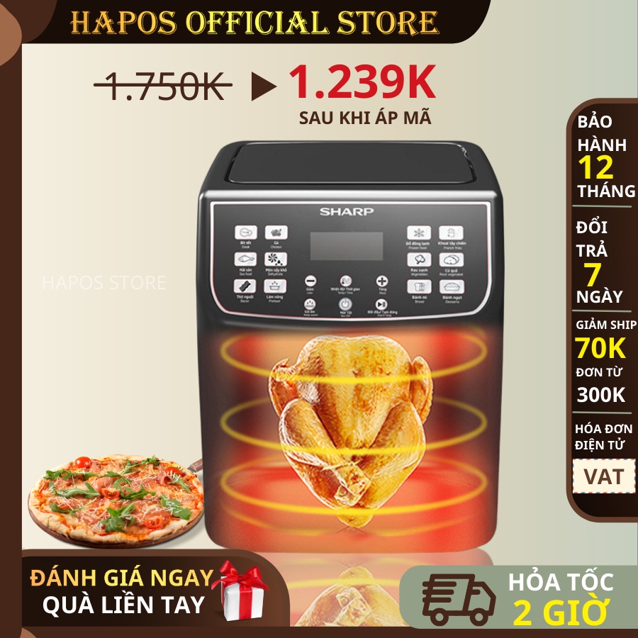 Giới thiệu Nồi chiên không dầu Sharp chống dính 4.2 - 7 lít công suất 1250W-1450W giảm 80% chất béo, tự ngắt khi quá nhiệt - HAPOS