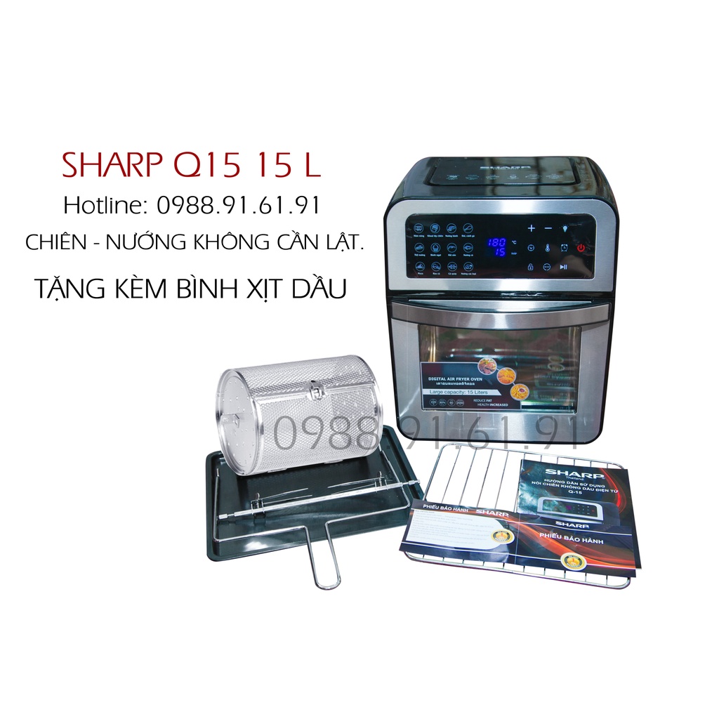Nồi Chiên Không Dầu SHARP15L***** SIÊU SALE KHUYẾN MÃI CUỐI NĂM KHI MUA NỒI CHIÊN SHARP SẼ ĐƯỢC TẶNG KÈM 8 MÓN PHỤ KIỆN BAO GỒM: khay hứng dầu, vỉ chiên,lồng quay, trục xiên quay gà, dụng cụ lấy đồ,xịt dầu thuỷ tinh cao cấp .