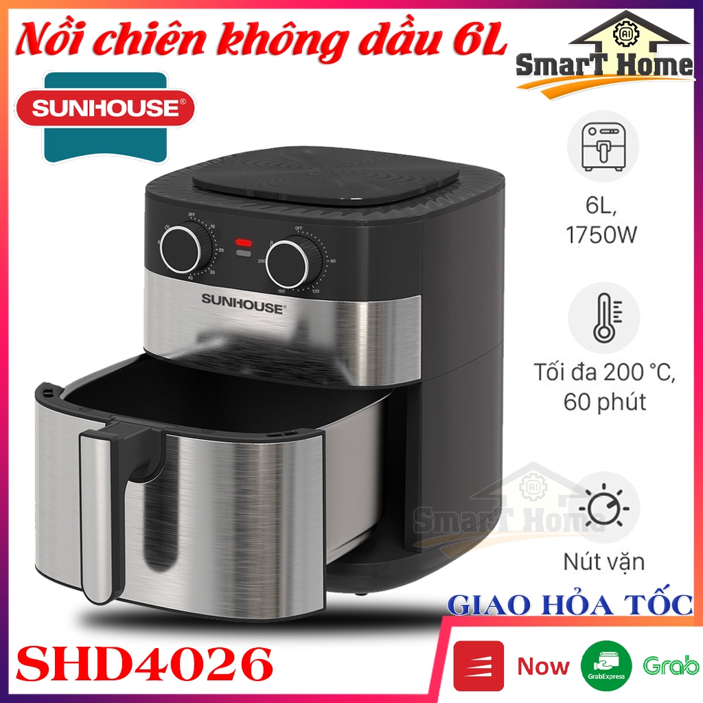 Nồi Chiên Không Dầu Sunhouse 6l SHD4026 Chính Hãng - Nồi Chiên Không Dầu 6L Công suất 1750W An Toàn Tiết Kiệm