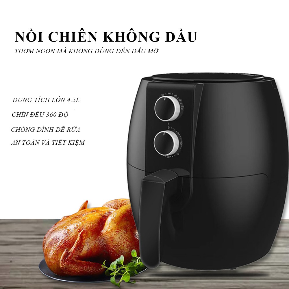 Nồi chiên không dầu thế hệ mới, không mùi, không khói, an toàn tiện lợi, dung tích 4,5l điều khiểnđiện tử, bảo hành 2năm