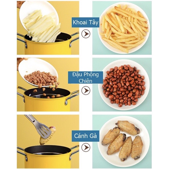 👉🏻Đặc biệt em này siêu tiết kiệm dầu. Đáy nồi bé giúp những món chiên ngập dầu mà không sợ tốn dầu