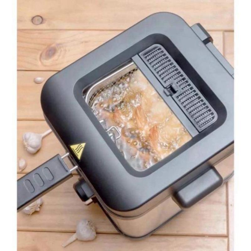 - Chất liệu: Thân: Nhôm (bên trong), thép không gỉ (bên ngoài). Giỏ chiên: thép không gỉ, nhựa PP
