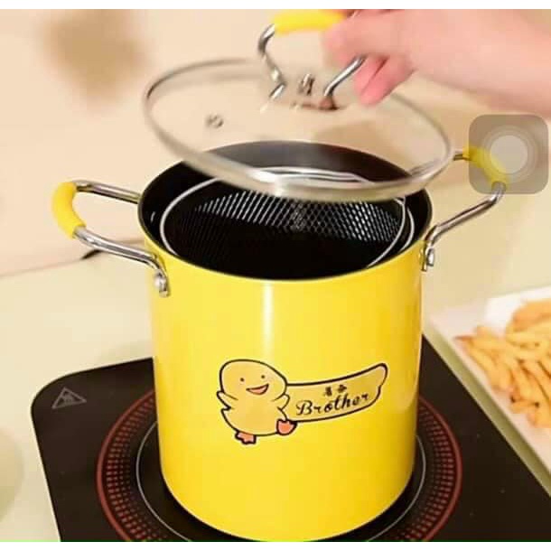 Nhà cửa & Đời sống > Dụng cụ nhà bếp > Nồi || Nồi chiên ngập dầu mini vịt vàng kèm rổ lọc inox size 18cmCòn hàng