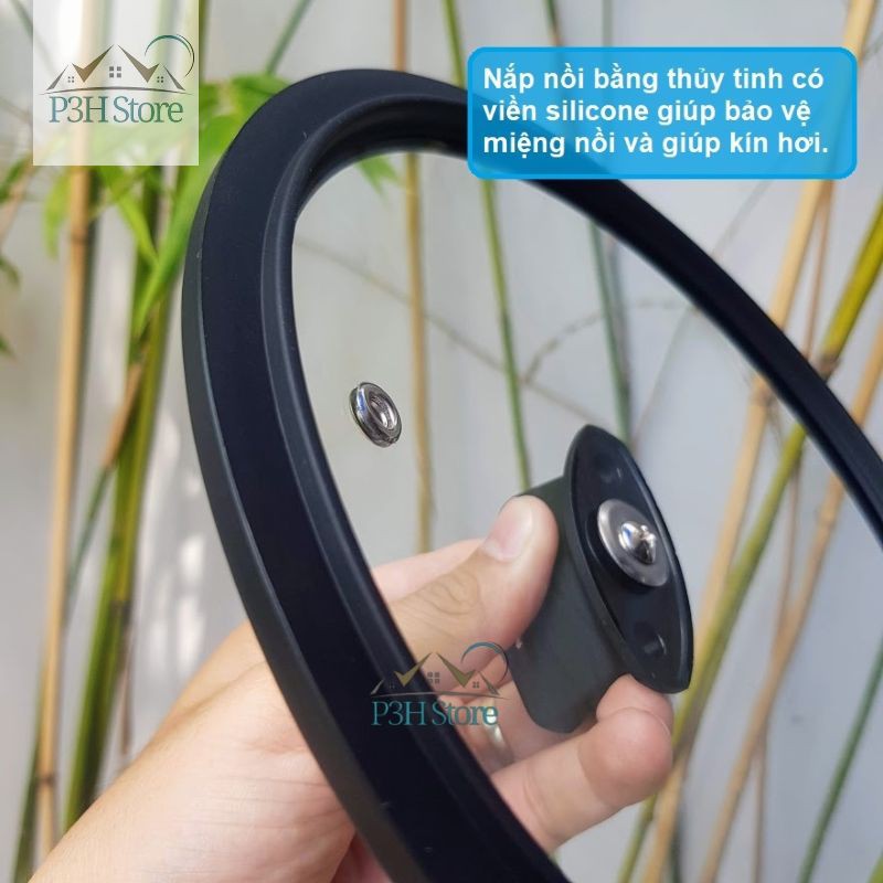 - Nắp nồi bằng thủy tinh có viền silicone giúp bảo vệ miệng nồi và giúp kín hơi.