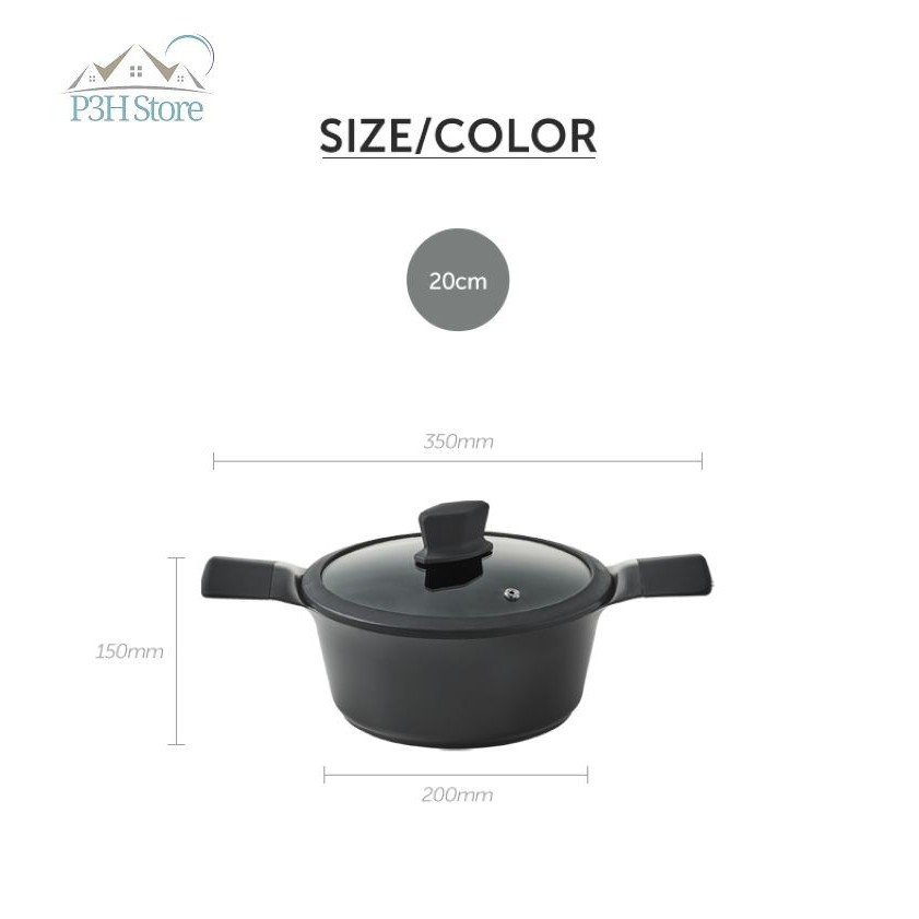 Nồi chống dính LocknLock EDGE sử dụng bếp từ size 20 CAC2011 24cm CAC2411- Kích thước: Size 20cm : đường kính nồi 20cm, cao 15cm, tổng chiều dài 35cm tính luôn 2 cán