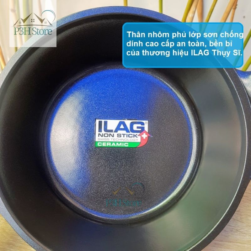 - Thân nhôm phủ lớp sơn chống dính cao cấp an toàn, bền bỉ của thương hiệu ILAG Thụy Sĩ
