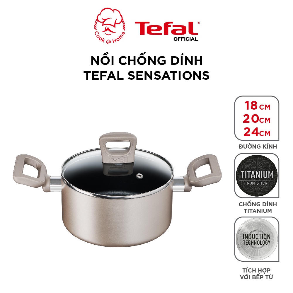 Nhà cửa & Đời sống > Dụng cụ nhà bếp > Nồi || [Mã BMINC50 giảm 10% đơn 150K] Nồi chống dính Tefal Sensations size 18, 20, 24cm- H9104314/H9104414/H9104614Còn hàng