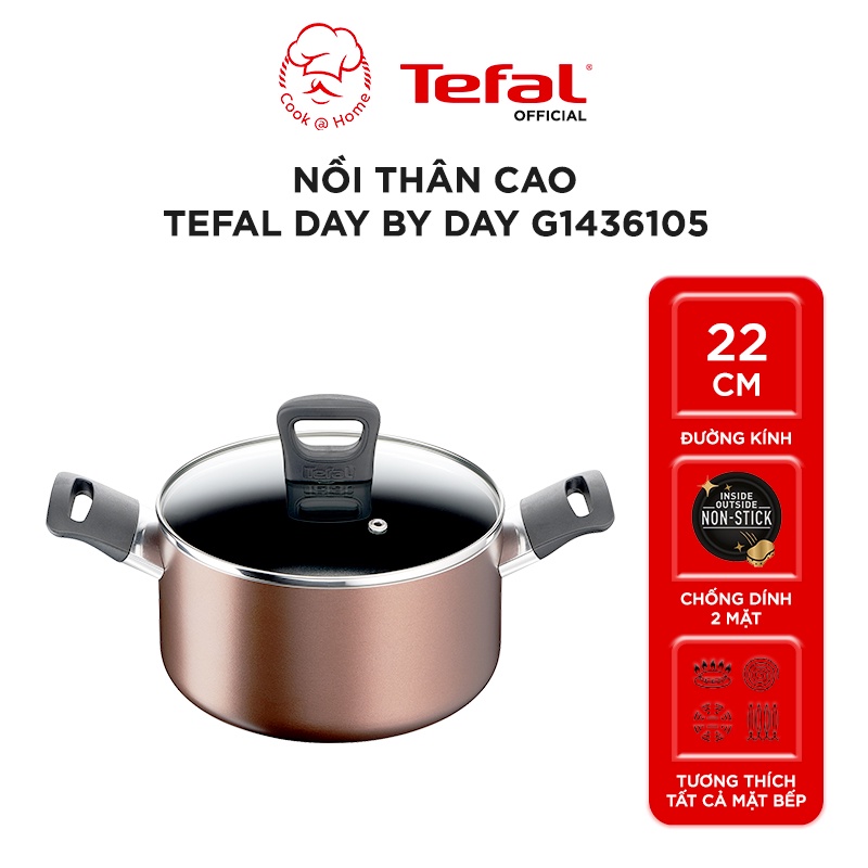 Nồi chống dính thân cao Tefal Day By Day 22cm G1436105 với thiết kế sang trọng , hiện đại**Đặc điểm nổi bật: