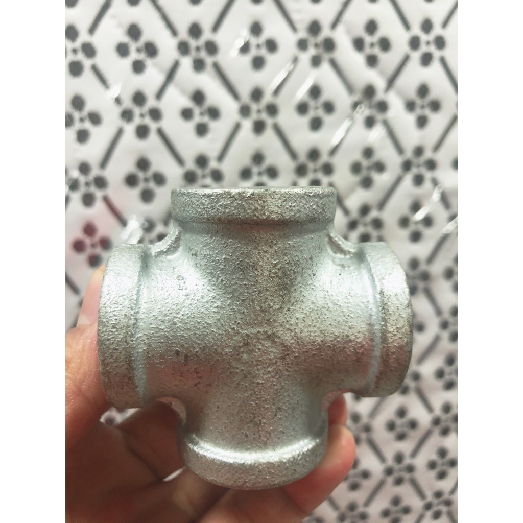- Nối Chữ Thập Nối Ống Nước Phi 27 - Gang Màu mã kẽm là chi tiết nối các góc phi ống 27 trong hạng mục trang trí bàn ghế, kệ hệ ống nước.