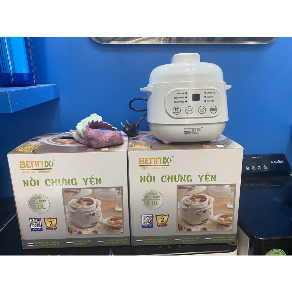 Nồi chưng yến mini Bennix BN-100A 1 lít hấp cách thủy, nồi nấu chậm đa năngNồi chưng yến Bennix BN-100A có thiết kế dung tích nhỏ gọn 1 lít phù hợp cho bạn sử dụng cho gia đình nhỏ, hay thường xuyên sử dụng để chế biến thực phẩm cho trẻ nhỏ hay nấu chè, cháo cho gia đình khoảng 2 – 3 người.