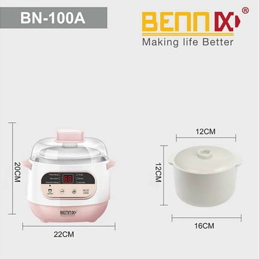 Nồi chưng yến, nấu chậm, hấp cách thủy Bennix BN-100AW dung tích 1 lít công xuất 200W, bảo hành 12 tháng