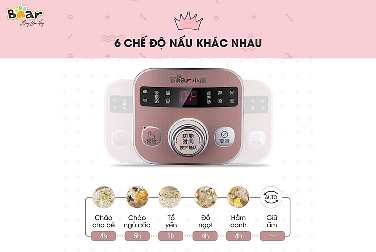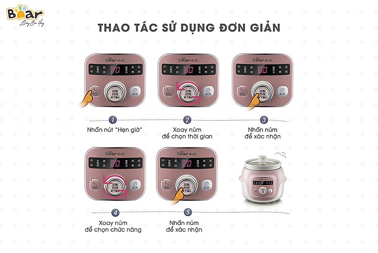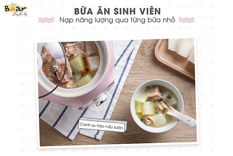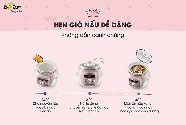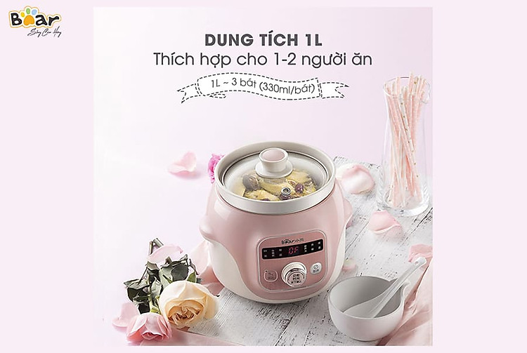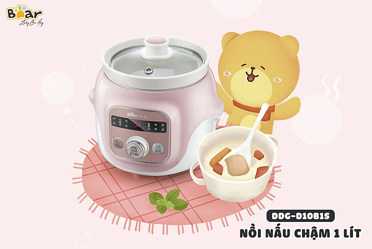 ồi Nấu Chậm 1 Lít Bear DDG-D10B1S với thiết kế bắt mắt, nhỏ gọn cùng 6 tính năng được tích hợp trong cùng 1 sản phẩm là trợ thủ đắc lực dành cho bạn. Đặc biệt, DDG-D10B1S còn được tích hợp tính năng hẹn giờ thông minh, tiện lợi hơn khi sử dụng.