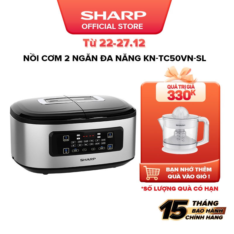 Nồi Cơm 2 Ngăn Đa Năng Sharp 1.8 lít KN-TC50VN-SL/WH• Dung tích 1.8 lít, Công suất 900W (mỗi bên 450W)