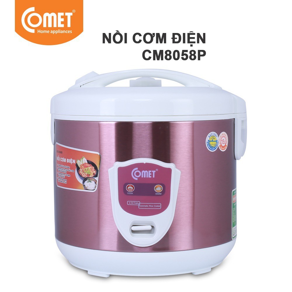 - Nồi cơm điện 1.8 lít Comet CM8058P-Tím mận thuộc dòng nồi cơm điện nắp gài, liền với thân dưới được ưa chuộng trong các ngôi nhà hiện đại. Sản phẩm nhỏ gọn với chiều ngang chỉ 28cm, mẫu mã lạ mắt nhờ màu tím sáng bóng mang lại sự sang trọng cho không gian căn bếp ngôi nhà bạn.