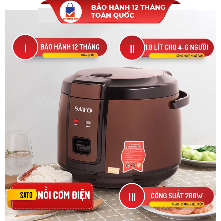 Thiết Bị Điện Gia Dụng > Đồ gia dụng nhà bếp > Nồi cơm điện || Nồi cơm điện 1.8L công nghệ Nhật Bản SATO 18F052Còn hàng