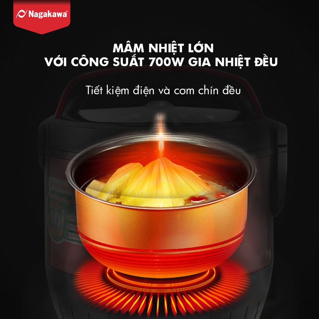 Giới thiệu chi tiết sản phẩm : Nồi cơm điện 1.8L Nagakawa NAG0119(vàng)✔️Công nghệ ủ ấm ba chiều, giữ nguyên hương vị