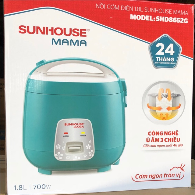 Giới thiệu [Mã ELHADEV giảm 4% đơn 300K] Nồi cơm điện 1.8L sunhouse SHD8652G - Bảo hành chính hãng 24 tháng