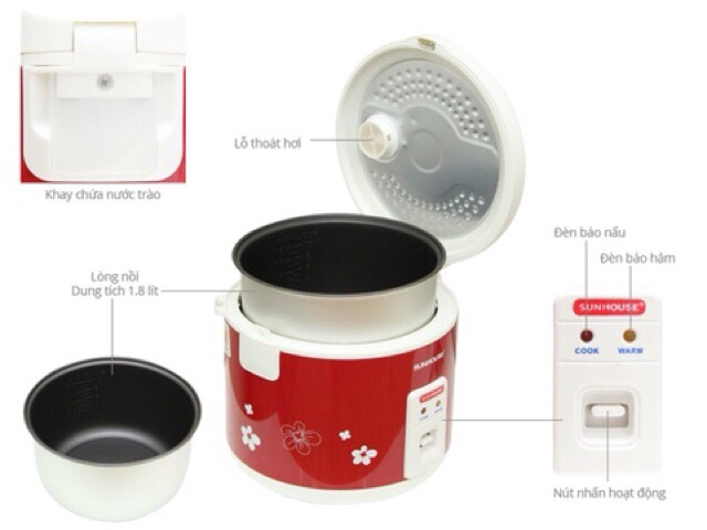 Giới thiệu Nồi cơm điện 1,8L Sunhouse SHD8601 Chính Hãng