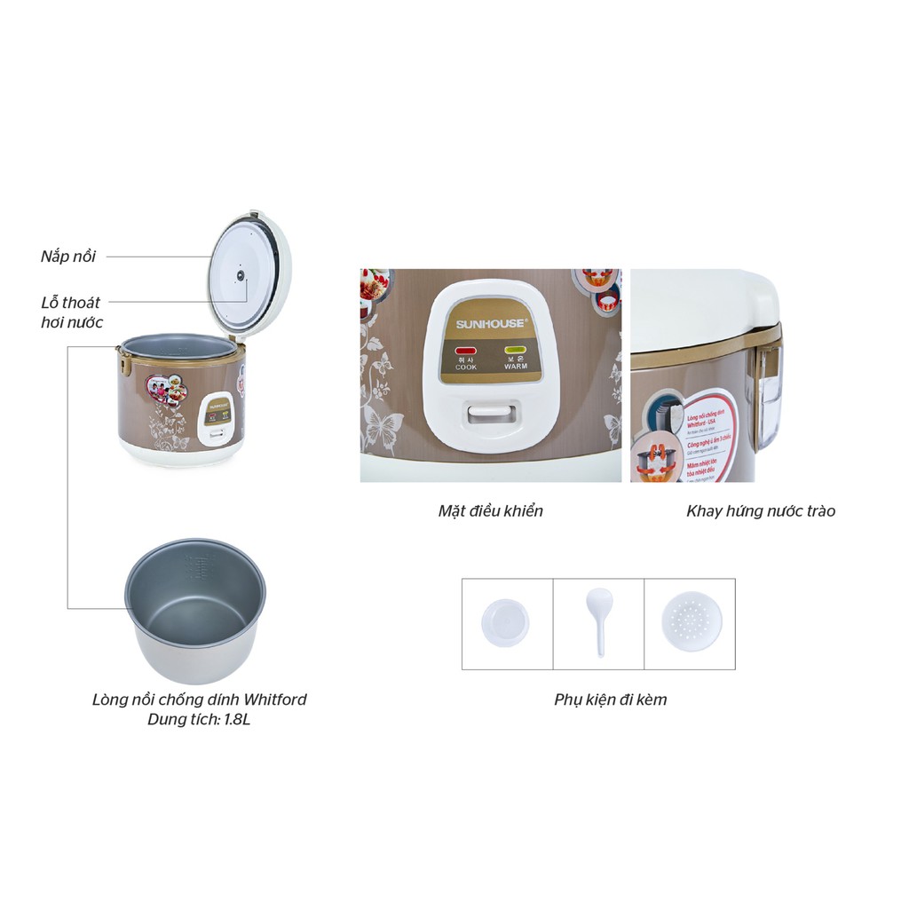[Mã ELHADEV giảm 4% đơn 300K] Nồi cơm điện 1.8L SUNHOUSE SHD8616