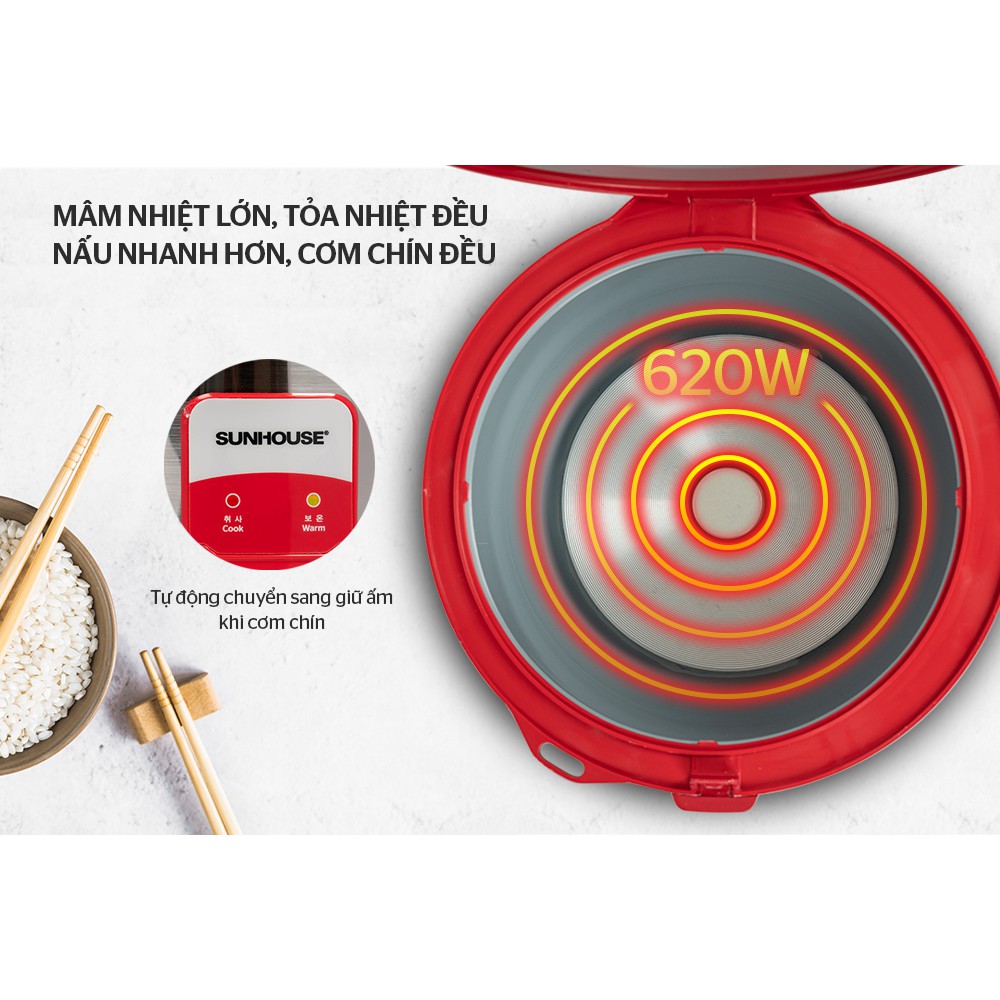 [Mã ELHADEV giảm 4% đơn 300K] Nồi cơm điện 1.8L SUNHOUSE SH18S