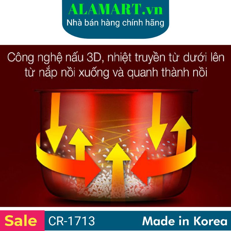Nồi cơm điện 3,0L Cuckoo CR-1713 nhập khẩu Hàn Quốc dùng gia đình 6 - 12 người ăn nấu 1,5 kg gạo