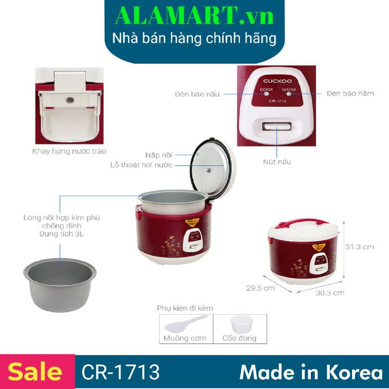 Giới thiệu Nồi cơm điện 3,0L Cuckoo CR-1713 nhập khẩu Hàn Quốc dùng gia đình 6 - 12 người ăn nấu 1,5 kg gạo
