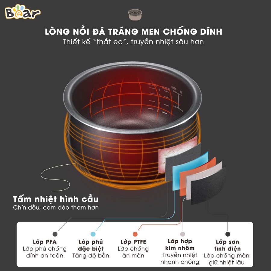 Nồi cơm điện thông minh Bear 2L gồm 8 chế độ nấu lõi nồi 5 lớp chống dính giữ nhiệt Gia dụng Bear Tuli Mart
