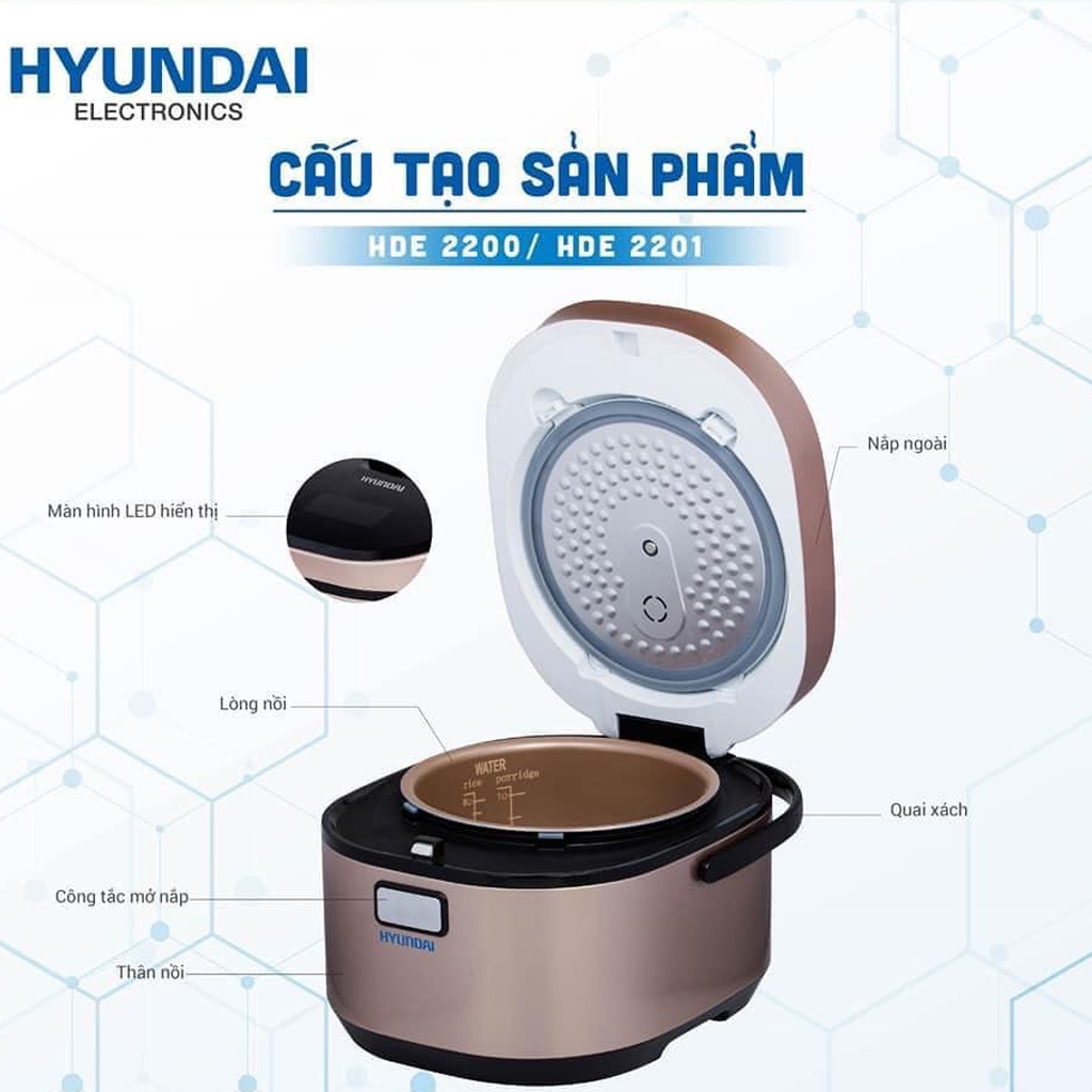 - Nồi cơm cao tần HYUNDAI HDE 2201G thiết kế hiện đại, phong cách Hàn Quốc, Cảm biến nhiệt thông minh, đa chức năng (nấu cơm, nấu cháo, hấp, làm bánh, ủ nóng…)