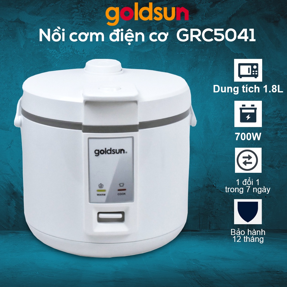 Nồi cơm điện cơ Goldsun GRC5041 dung tích 1.8L - Nồi cơm dành cho gia đình thiết kế sang trọng, có quay xách