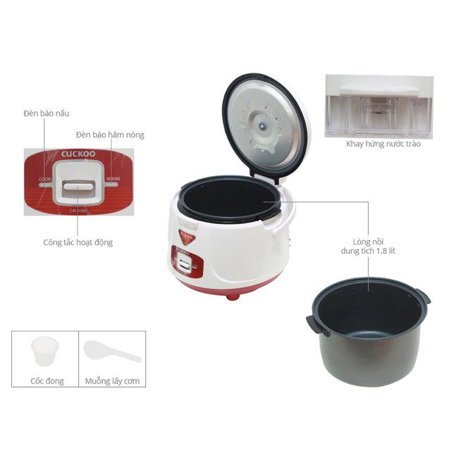 Giới thiệu [Mã ELHADEV giảm 4% đơn 300K] Nồi Cơm Điện Cuckoo CR-1055 Chính Hãng BH24 tháng